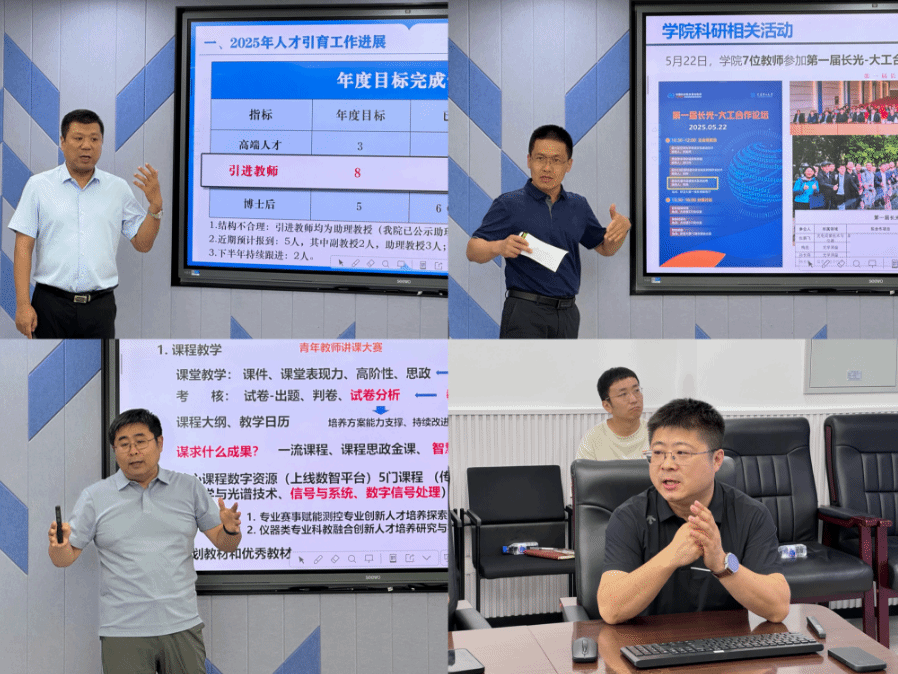 7月18日至19日,为凝聚高质量发展合力,明确学院发展路径,光仪学院召开2025年上半年事业发展研讨会。学院班子全体成员,各科研团队(项目组),全体教授、副教授、七级管理岗参加会议,讲师、助理教授、机关行政人员列席会议,会议由党委书记王杨主持。