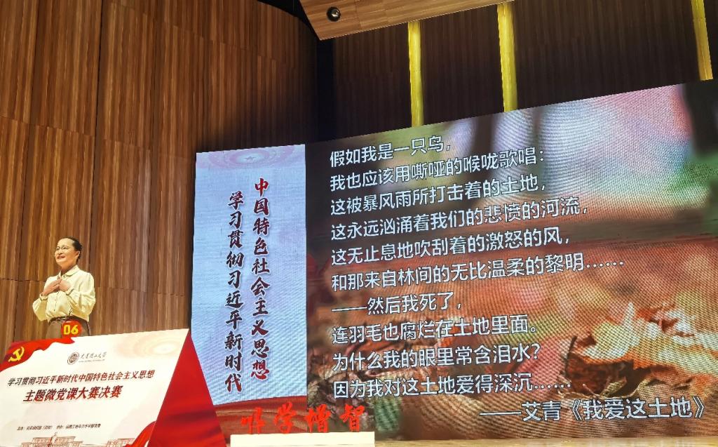 马冬晗在微党课中讲述了近代以来,无数仁人志士以“索我理想之中华”为追求,负笈海外、心系家国,在中国革命、建设、改革的历史画卷中写下了动人的篇章,结合自身海外经历讲述了自己归国初心,最后用艾青的诗《我爱这土地》作为结束,精彩的党课引得现场阵阵掌声。