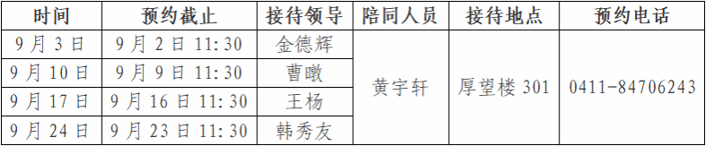 为进一步加强学院领导班子与师生间的沟通交流,畅通师生诉求反映渠道,切实解决师生关切问题,本月领导班子接待日具体安排如下: