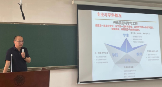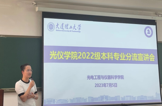 为使光仪学院2022级本科生充分了解学院专业方向、学科特色,为学生专业分流选择提供指导,7月5日下午,学院在研教楼103进行专业分流宣讲会,副院长韩秀友教授、光电系主任谷一英教授、仪器系主任陈晓明教授、青年教师代表马冬晗教授以及2022级全体本科生参加本次会议,会议由韩秀友主持。