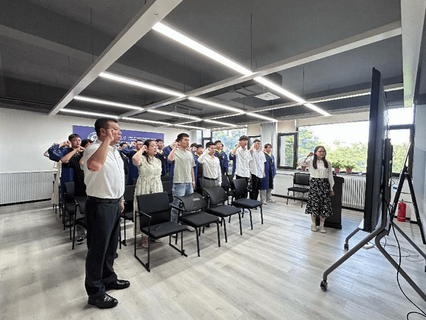 随后,全体毕业生党员面向党旗,高举右拳,重温入党誓词。誓言铿锵有力,彰显了新时代青年党员朝气蓬勃的精神面貌和立志报国的理想信念。